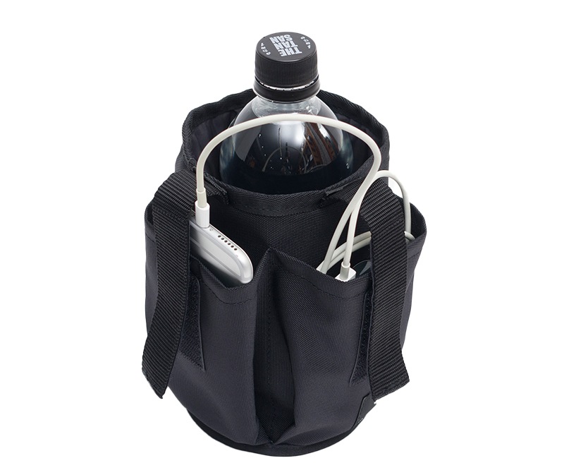 500mlのペットボトルも余裕で対応し、巾着でふたをすることができるので、振動による落下を防ぎます。