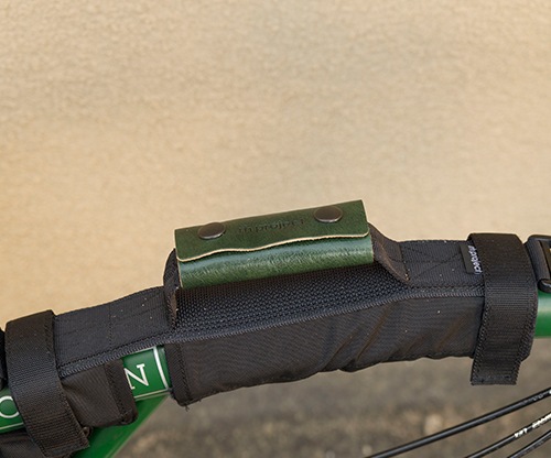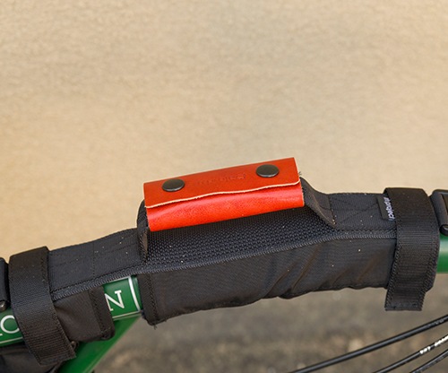 革製品の製造工程で発生する端切れをアップサイクルして作られたハンドルカバーです。