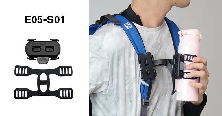 OsmaR(オスマー)ボトルホルダー(E05-S01)をバックパックの肩ベルトに固定するためのアタッチメントです。
