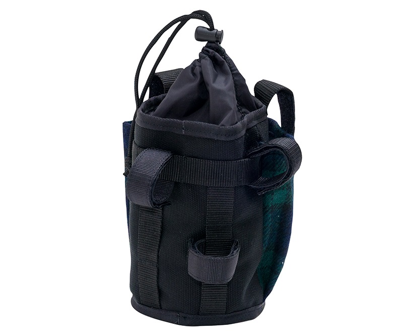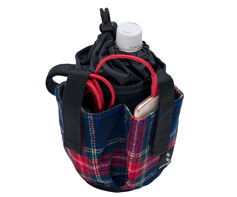 500mlのペットボトルも余裕で対応し、巾着でふたをすることができるので、振動による落下を防ぎます。