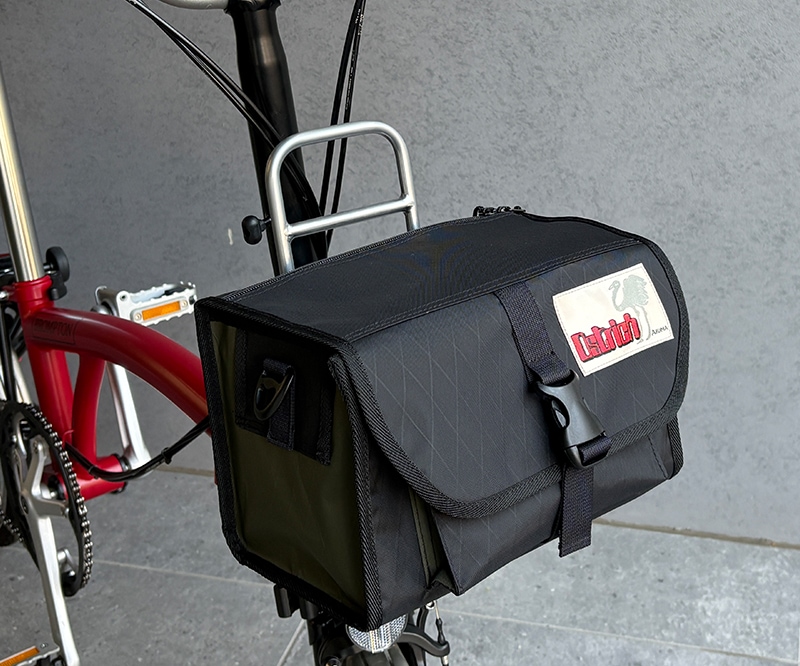 ブロンプトンのフロントキャリアブロックに取り付けて使用するNITTO製のフロントキャリア。