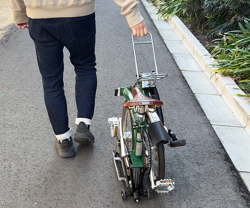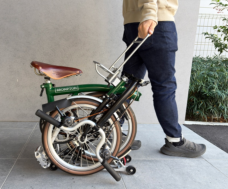 折りたたんだ状態のブロンプトンを転がすための持ち手としてご使用いただけます。