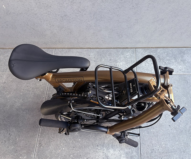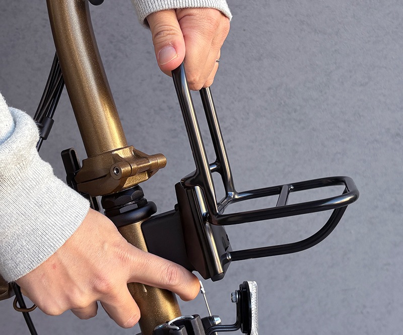 装着したまま車体を折り畳むことが可能です(BROMPTON、Tyrell IVEの場合)。