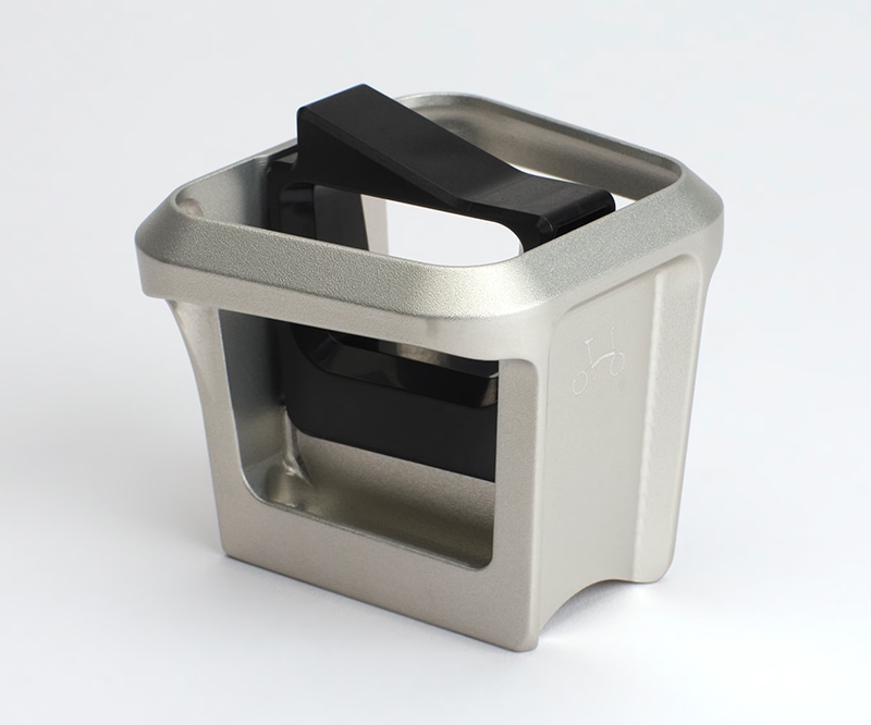 ブロンプトン標準の樹脂製フロントキャリアブロックと比較して、ほぼ2倍の剛性を実現しています。