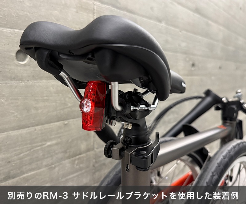 また、別売りのRM-3 サドルレールブラケットを使用すれば、サドルレールにも取り付けが可能です。
