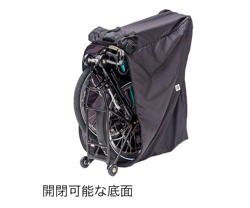 底面がファスナーで開閉できるようになっており、キャスターが付いている車体は折りたたんだ状態で転がして移動することもできます。