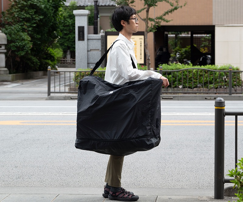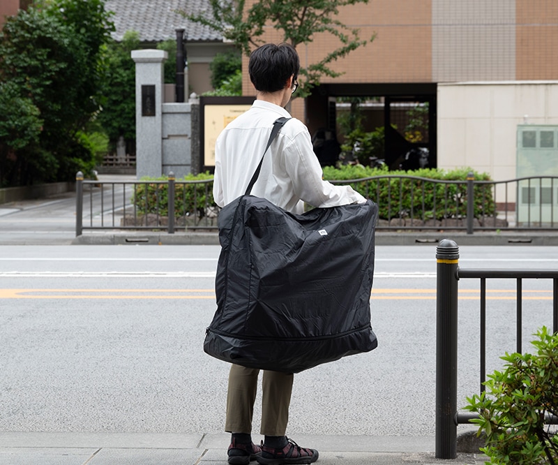 公共交通機関によっては、車体の一部が袋の外に出ている状態での持ち込みや施設内のキャスター移動ができません。