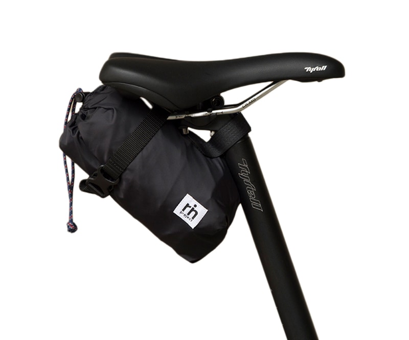 メインの生地はナイロン素材、強度が必要な個所にはPVC素材を使用し、強度と軽さを両立。サドルレールとシートポストに固定して携帯することが可能です。