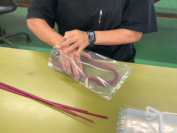 全ての製品はパッケージングの工程で作業員が1本1本、目視と手触りで丁寧に検品しています。